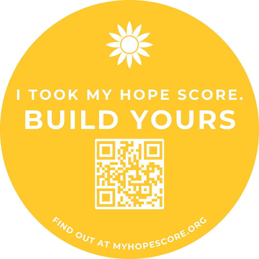 We’re so glad you’re here. My Hope Score is a simple tool to help you see where you are on your Hope journey today. Your score is not a label, it’s a snapshot, and it will rise and fall with life. That’s normal.